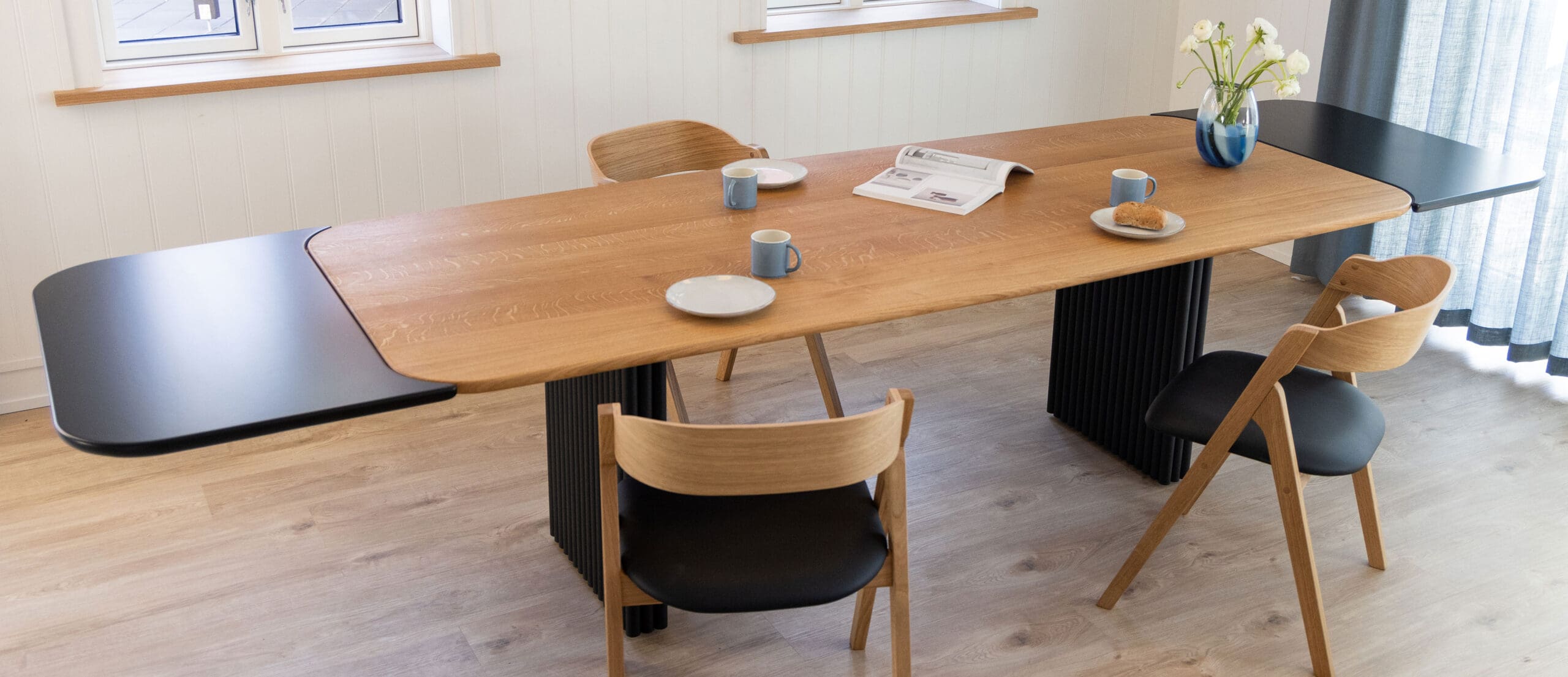 Because of the wood’s sensitivity towards changes in humidity and temperature, wooden furniture in solid wood may change as the seasons change – the width of a tabletop in solid wood can for instance change. In the winther, the humidity is low, which will make the wood shrink whereas in the summer, the humidity is higher leading to the wood expanding. As a mail rule, solid wood can expand around 1 % of its width. For instance, a tabletop with a width of 100 cm could expand one centimeter. However, it is mostly the width of the wood that will expand, hence, changes in the length will not be noticeable.