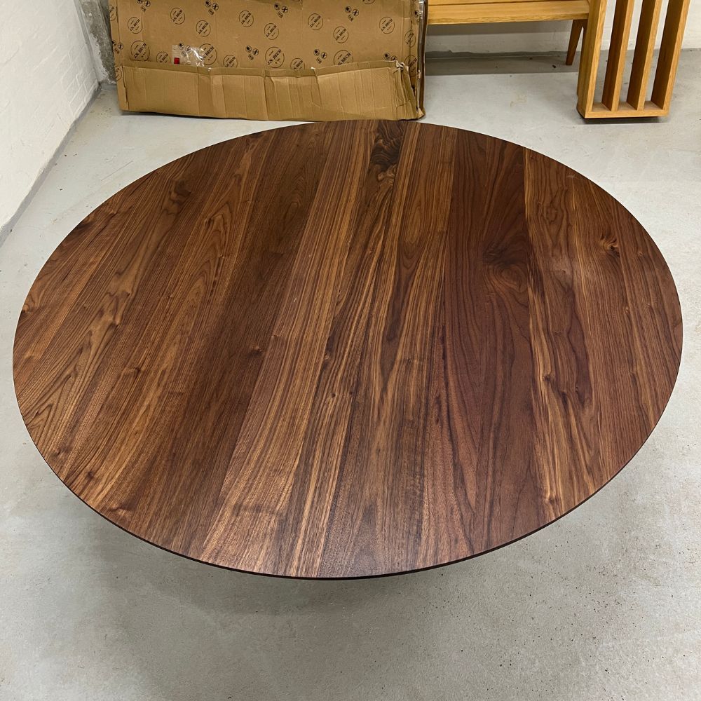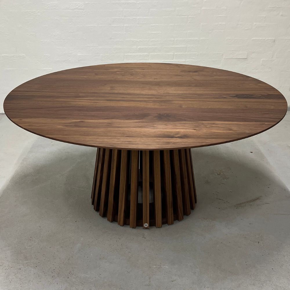 Rundt spisebord i massivt valnød, behandlet med upigmenteret olie. Bordet har en lamelfod, ligeledes i massivt olieret valnød.